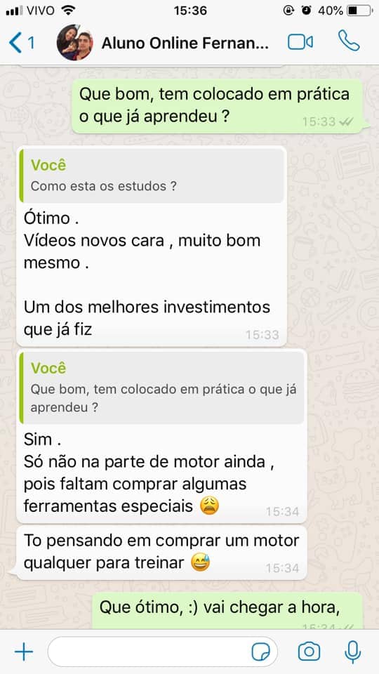 Após a inscrição no curso, você terá acesso a um grupo exclusivo de mecânicos e empresários de todo o Brasil. Neste ambiente, você poderá tirar dúvidas, encontrar oportunidades e compartilhar experiências para impulsionar seu crescimento profissional e empresarial no setor. Este grupo é uma parte fundamental do suporte oferecido pelo curso, garantindo que você tenha todo o apoio necessário para alcançar seus objetivos.